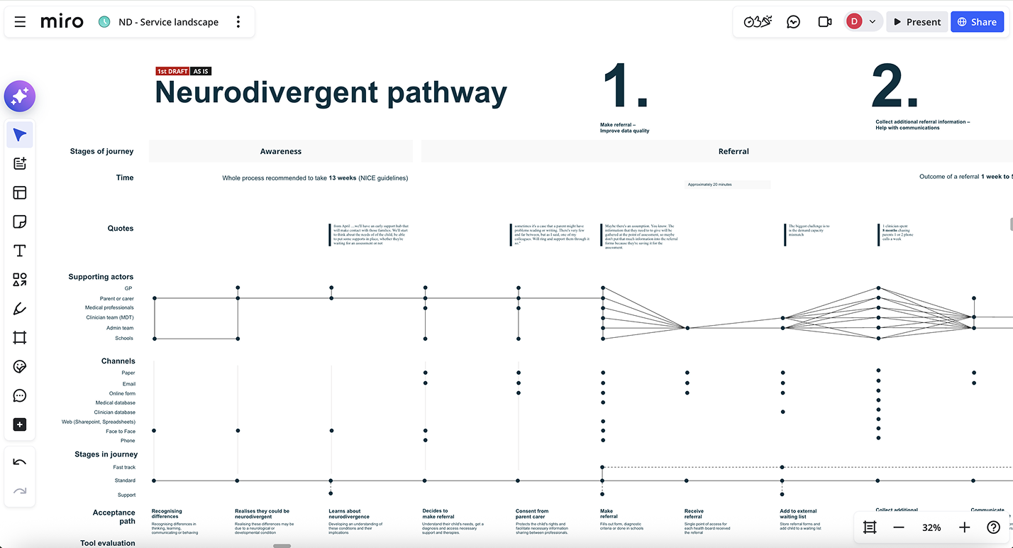 Mapping the end-to-end journey helped teams see how local decisions affected the wider system. It also shifted conversations away from individual tools and towards service flow and user needs.